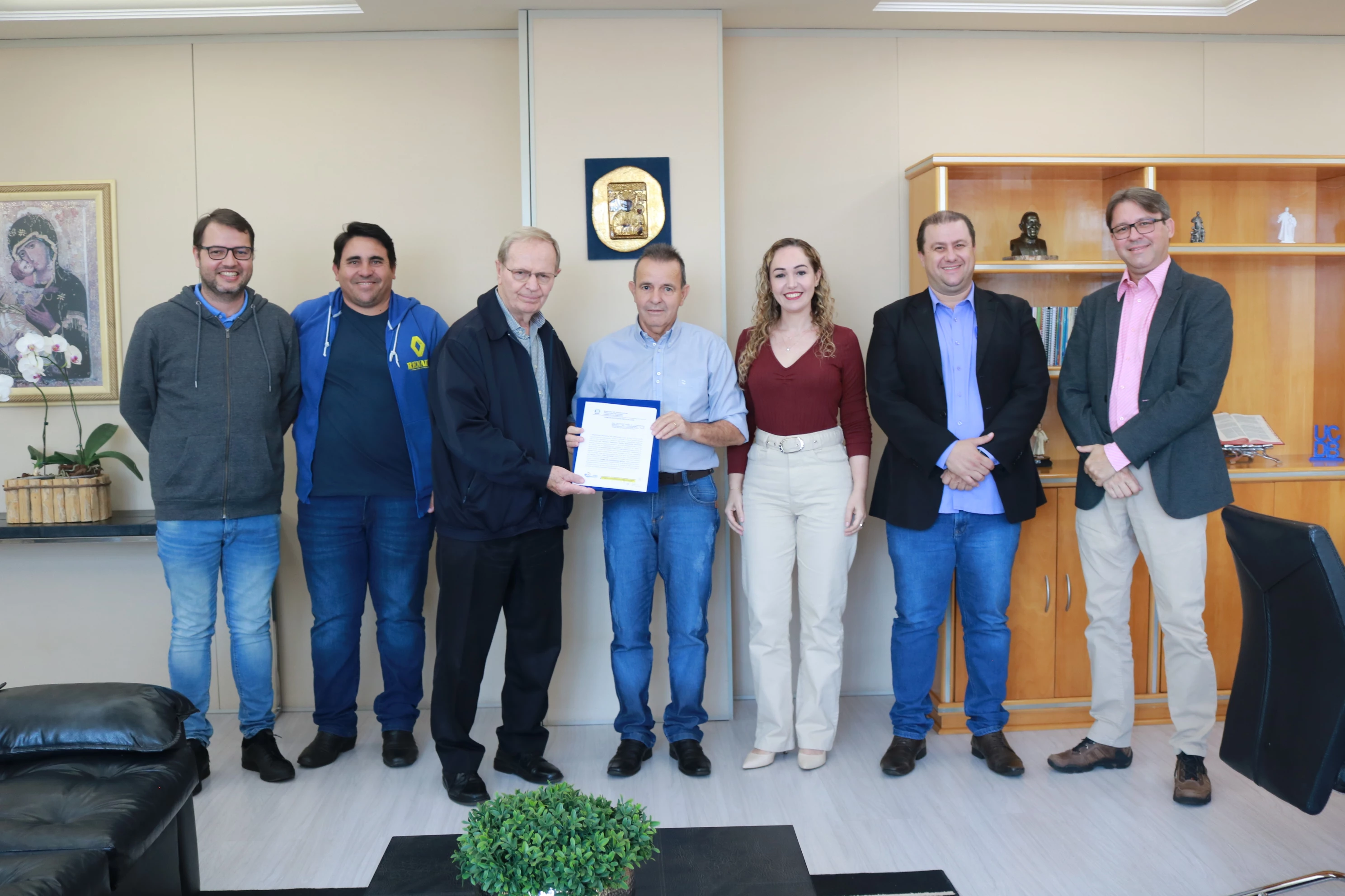 Participaram da cerimônia, também, o Pró-Reitor de Pesquisa da UCDB, Cristiano Marcelo Espínola Carvalho, o coordenador da Agência de Inovação de Empreendedorismo da UCDB (S-Inova), Vinícius Lugo Samúdio, o chefe de gabinete de Jaraguari, Lucas Tonet, o secretário de Desenvolvimento Econômico, Meio Ambiente e Agricultura, Kleber da Costa, e a gerente de convênios Ariane Wust.