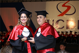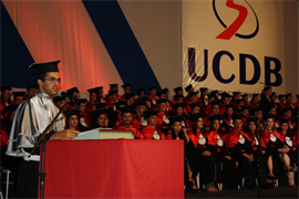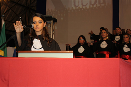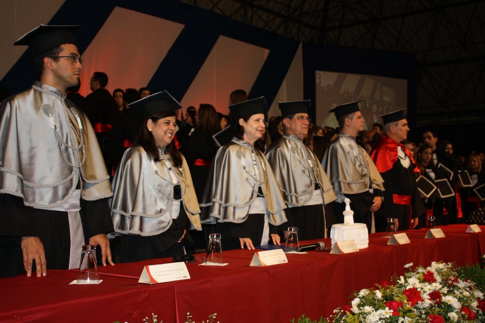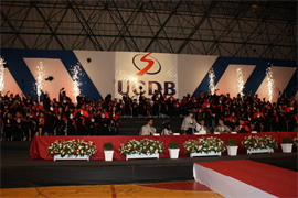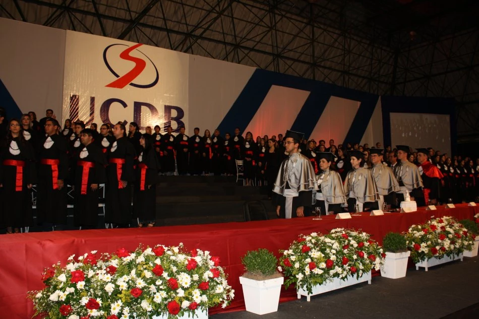 A mesa solene contou com a presença da Pró-Reitora de Ensino e Desenvolvimento, professora Conceição Butera, no ato representando o Reitor da UCDB, Pe. José Marinoni, do Pró-Reitor de Administração, Ir. Altair Monteiro da Silva, do Pró-Reitor de Pesquisa e Pós-Graduação, professor Dr. Hemerson Pistori, da Pró-Reitora de Extensão e Assuntos Comunitários, professora Dra. Luciane Pinho de Almeida, e do Pró-Reitor de Pastoral, Ir. Gilliano José Mazzeto de Castro, além do coordenador de curso, Maucir Pauletti.
