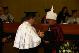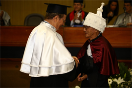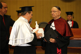 “No ano do Bicentenário do Nascimento de Dom Bosco, sentimo-nos profundamente honrados e enaltecidos pela concessão do título de Doutor Honoris Causa a estas cinco personalidades, que nos deixam uma grande mensagem: Que uma vida vivida com paixão, dedicação e a serviço dos outros é uma causa nobre e realizadora”, discursou o Chanceler da UCDB e presidente da Missão Salesiana de Mato Grosso, Pe. Dr. Gildásio Mendes dos Santos. “Somente uma grande Universidade sabe valorizar, promover e honrar os seus educadores através do reconhecimento de tamanha importância e significatividade como o título ora concedido”, complementou.