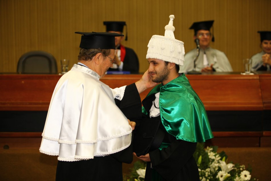 A Universidade Católica Dom Bosco ganhou cinco novos Doutores Honoris Causa, na noite de ontem (12), em cerimônia repleta de emoção e reconhecimento pelo trabalho educacional e missionário de professores e salesianos. Receberam a homenagem Ir. Adalbert Heide, Pe. Bartolomeo Giaccaria, Pe. Gonçalo Alberto Ochoa Camargo e os professores Dr. Antonio Brand e Dra. Mariluce Bittar, ambos in memoriam, representados por seus filhos, Luciana Brand e André Bittar.