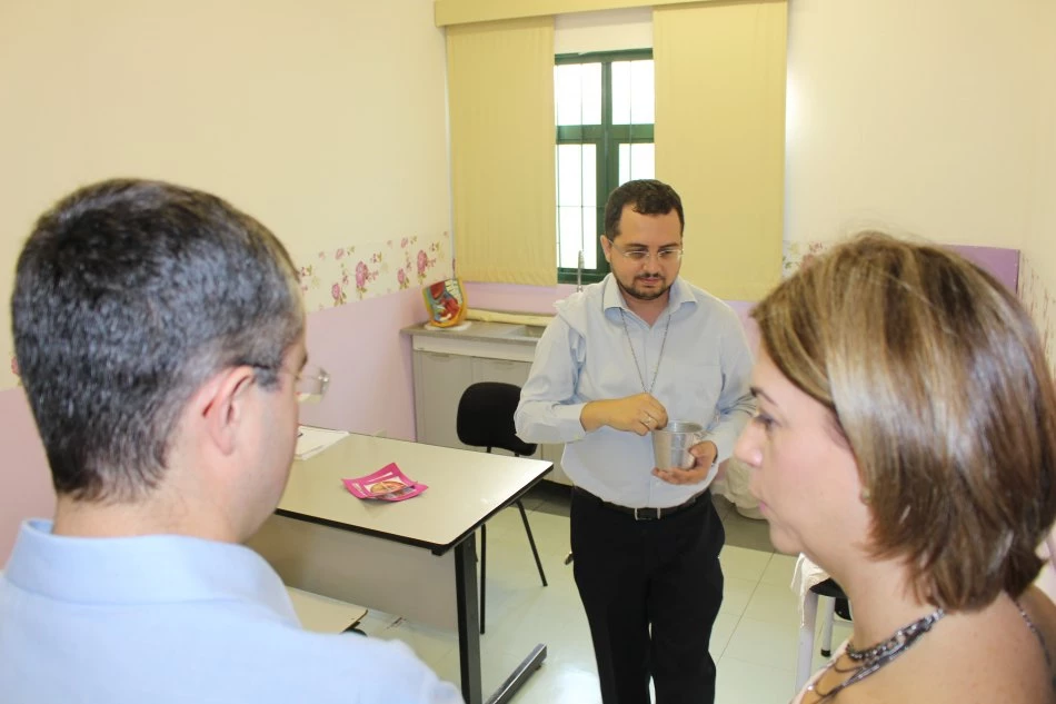 Pe. João Marcos abençoou o novo espaço e aspergiu água benta. Em seguida, a coordenadora do curso de Enfermagem da UCDB apresentou as novas instalações, que foram revitalizadas com a colaboração dos próprios acadêmicos.