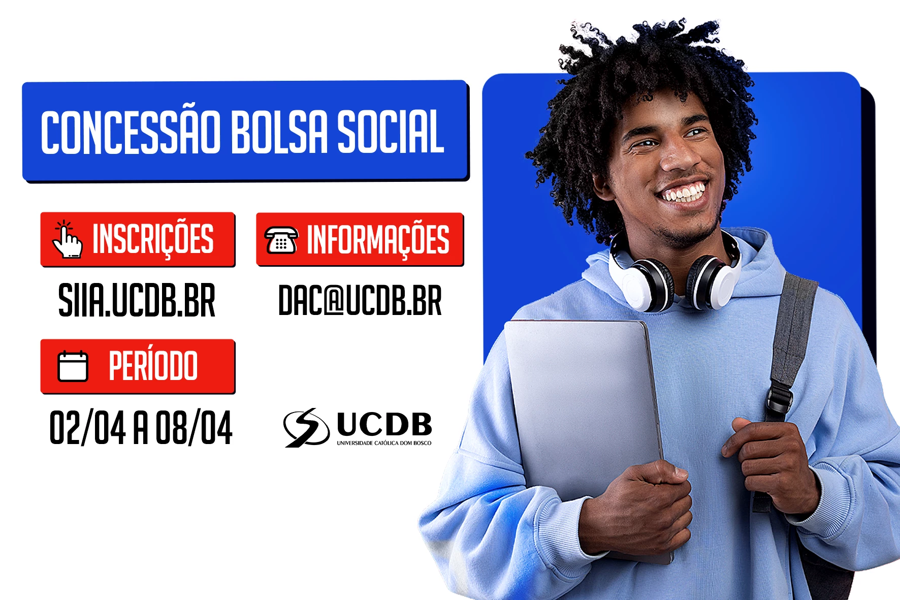As inscrições para o processo seletivo de concessão de Bolsa Social de Estudo da Universidade Católica Dom Bosco (UCDB) podem ser feitas de 2 a 8 de abril. Para participar, o aluno deve estar cursando a primeira graduação, não ter vínculo ativo com outra instituição, não usufruir de bolsa de estudo oriundos de governo e não ser beneficiário de outro programa de bolsas, créditos ou financiamentos.
