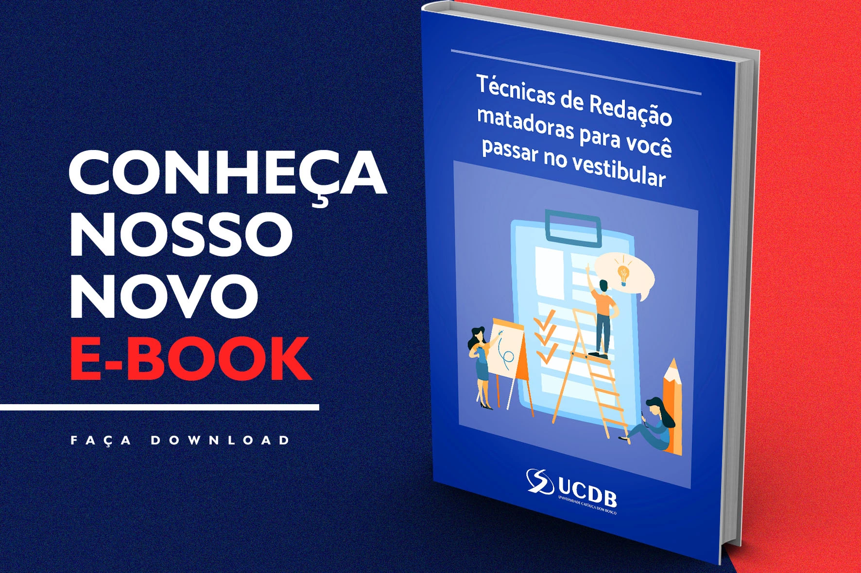 Já está disponível para download o e-book “Técnicas de Redação matadoras para você passar no vestibular”. Esse é o primeiro número lançado pela Universidade Católica Dom Bosco para ajudar os estudantes do ensino médio a ter êxito nas provas seletivas universitárias, como o Exame Nacional do Ensino Médio (Enem). Periodicamente, serão lançados novos materiais com temas de interesse para o público jovem.