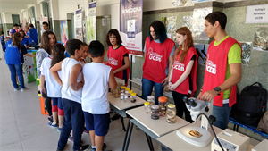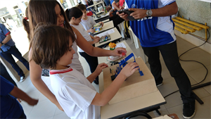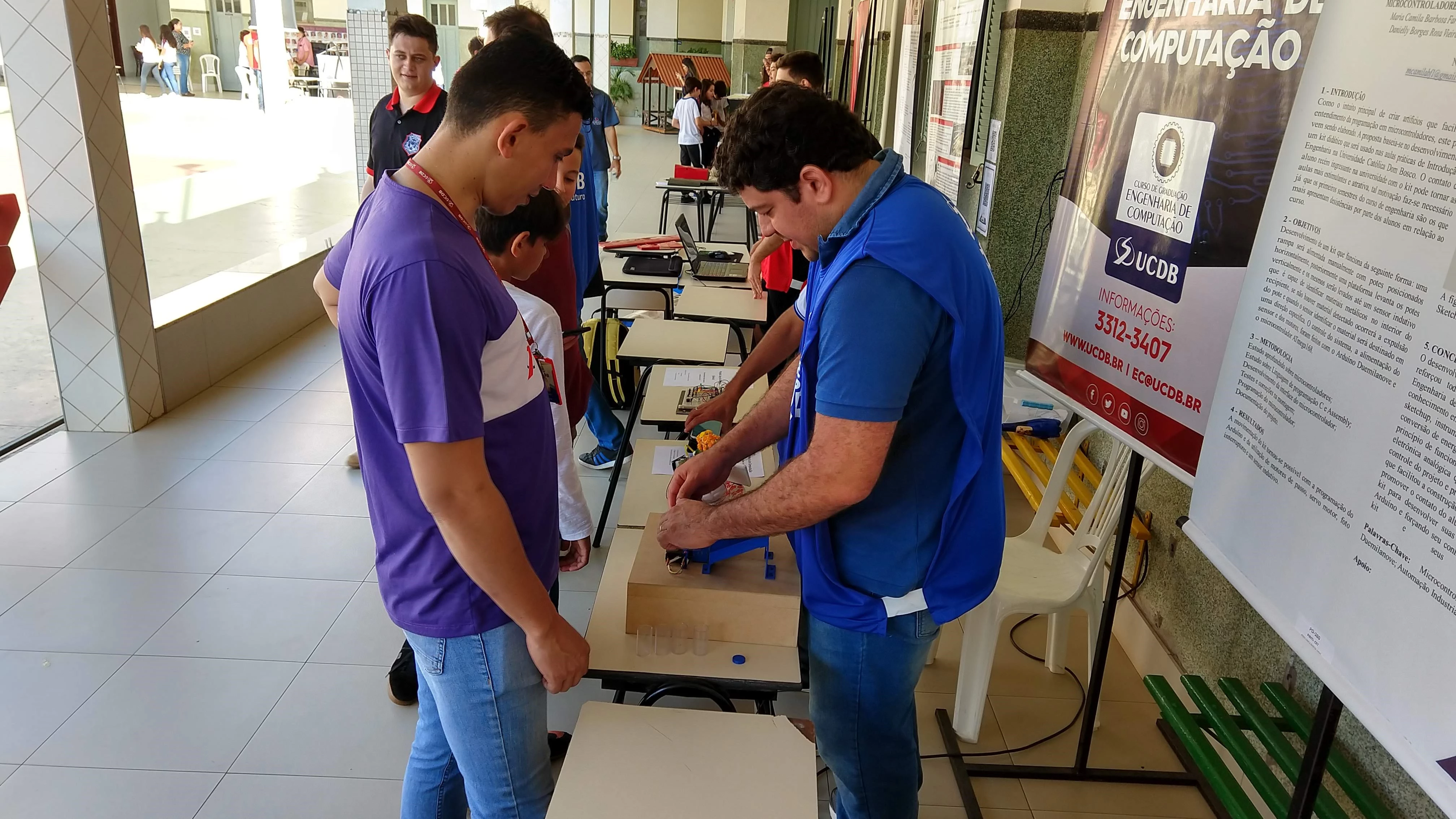 Os cursos de engenharias também demonstraram um pouquinho da atuação. “Eles ficam super empolgados quando a gente mostra os projetos, veem um circuito funcionando, um motor levantando uma rampinha simulando um processo de automação. Dessa forma é um pouco mais fácil de explicar para eles o que é um curso de engenharia”, explicou o coordenador do curso de Engenharia de Computação, Edivaldo Francisco Freitas Lima.