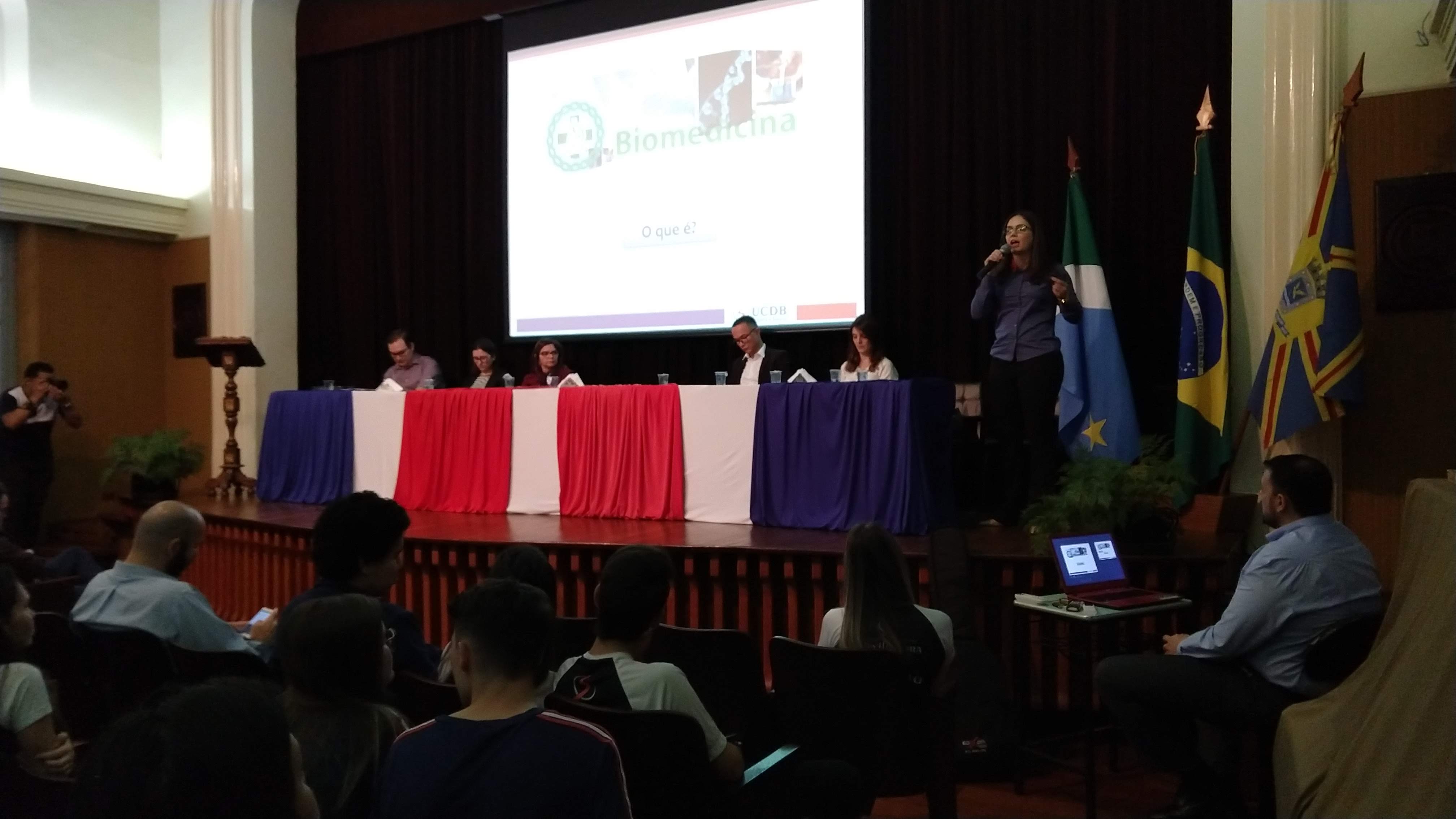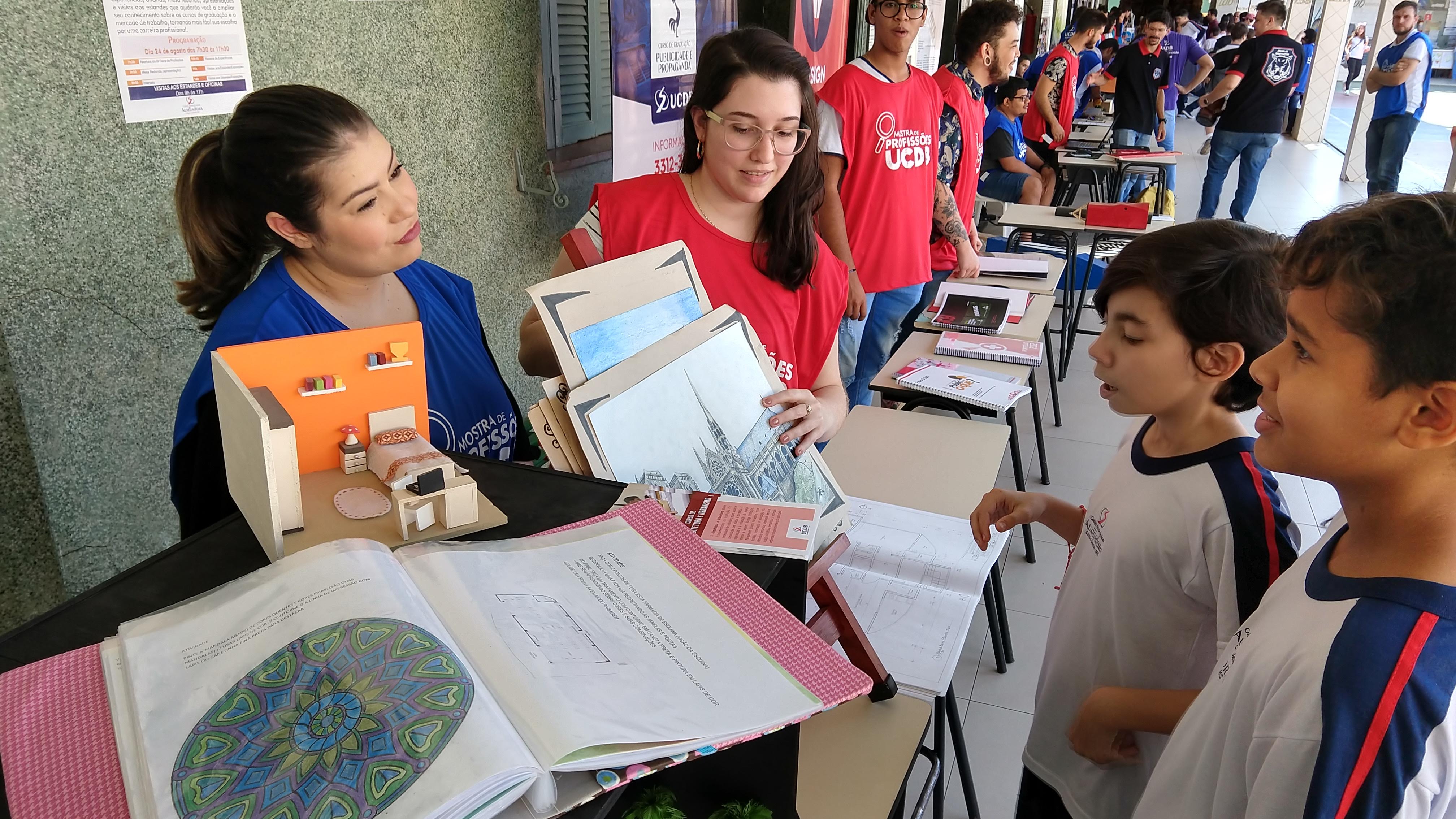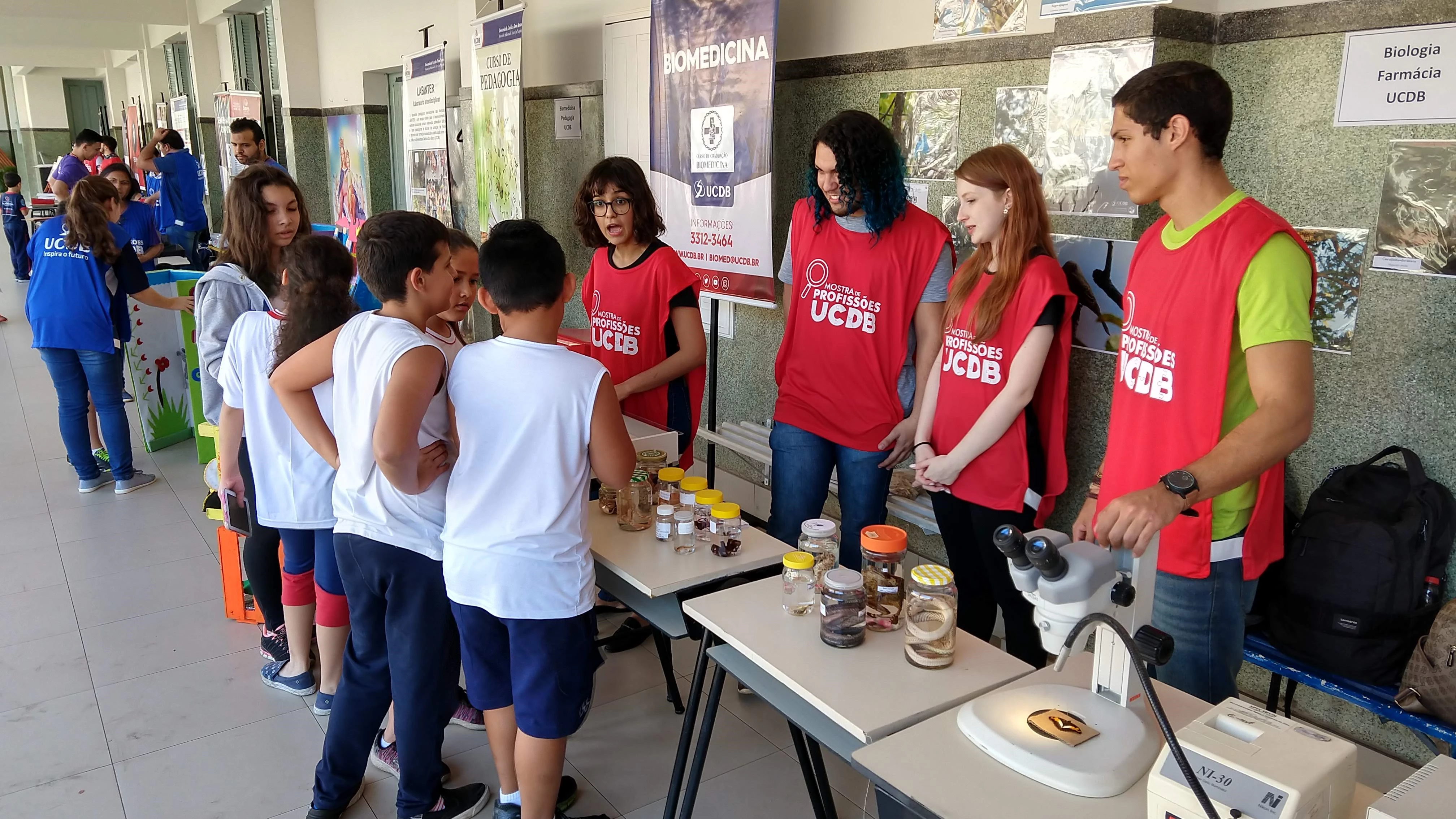 Coordenadores, professores e acadêmicos da Universidade Católica Dom Bosco participaram, na sexta-feira (24), da terceira edição da feira de Profissões do colégio Nossa Senhora Auxiliadora, em Campo Grande. Cada curso levou uma amostra do que é feito nos laboratórios, trabalhos de arquitetura, ciências biológicas, farmácia, engenharias, biomedicina, entre outros.