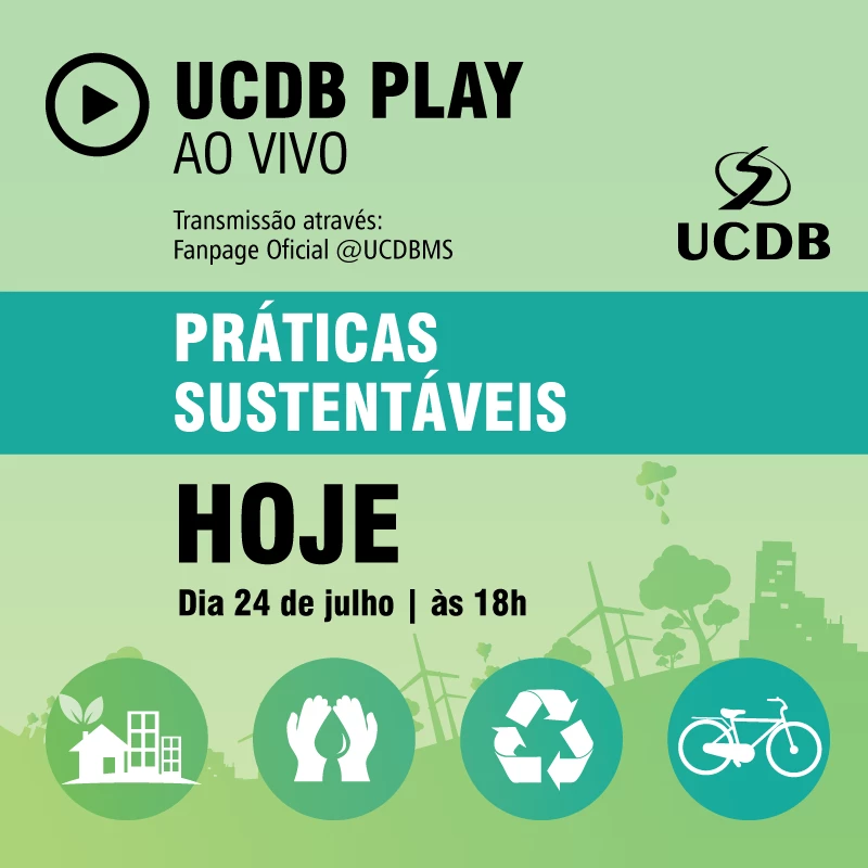 Hoje (24), às 18h, será transmitido o UCDB Play Ao Vivo por meio da fanpage oficial @UCDBMS, no Facebook. Desta vez, a live vai falar sobre “Práticas Sustentáveis”, e traz dicas simples de como adotar em casa hábitos que beneficiam o meio ambiente e, consequentemente, também geram economia para as famílias, como o aproveitamento da luz solar, o reaproveitamento de água e adoção de meios de transporte limpos, como a bicicleta.
