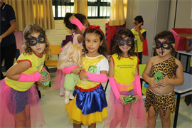 Com brincadeiras lúdicas, organizadas pela equipe de pedagogas, as crianças se fantasiaram e dançaram ao som de marchinhas tradicionais de Carnaval e músicas religiosas.