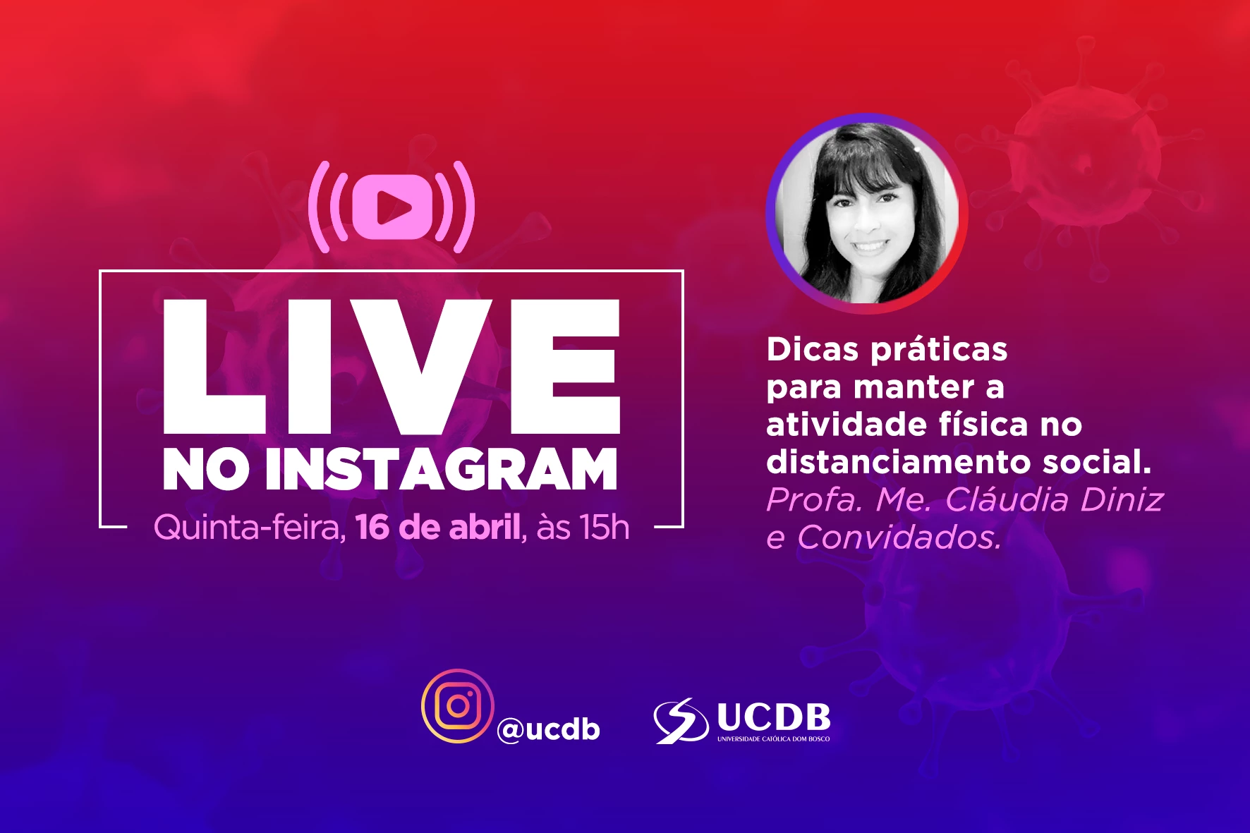 ‘Dicas práticas para manter atividade física no distanciamento social’ é o tema da live que a Universidade Católica Dom Bosco (UCDB) vai transmitir nesta quinta-feira (16), às 15 horas, através conta oficial no Instagram (@ucdb), com a professora Cláudia Diniz, profissional de Educação Física, e as professoras convidadas Márcia Rotta, que é fisioterapeuta, e Kely Cristina Garcia Vilena, que é enfermeira.