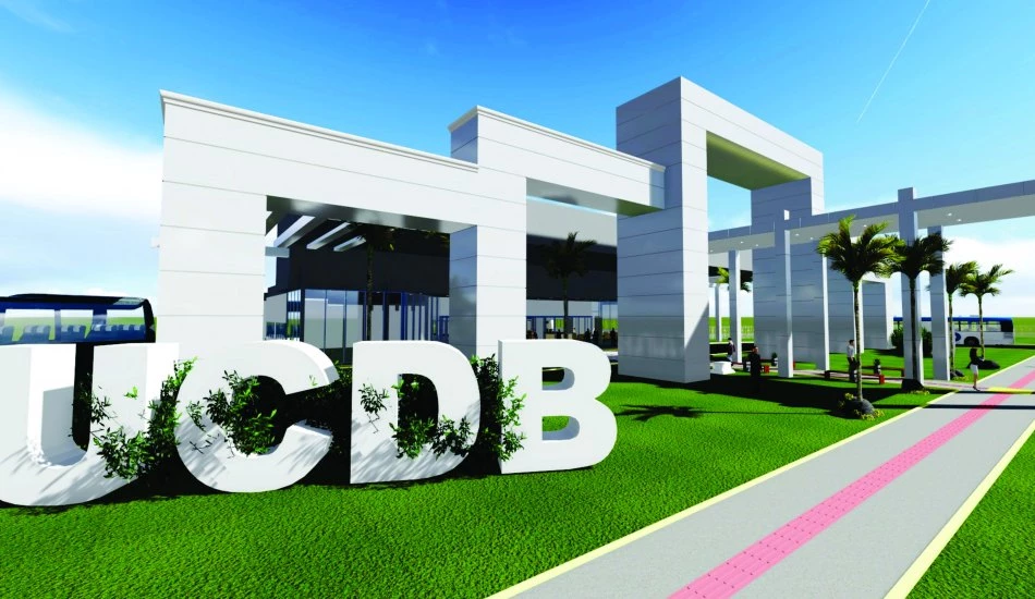 A maior delas é a reforma da fachada e do terminal rodoviário. Durante os próximos seis meses, o acesso dos pedestres será pelo portão lateral, enquanto os ônibus entrarão no estacionamento do bloco B para o embarque e desembarque dos usuários. Veja como ficará a nova entrada da UCDB.