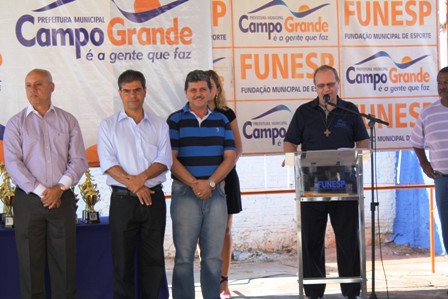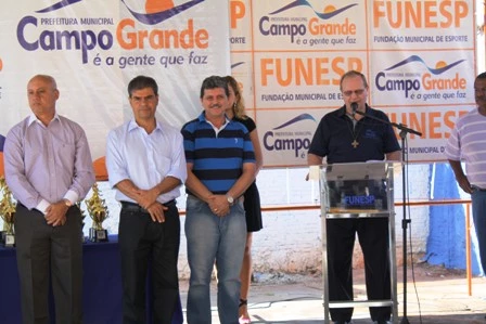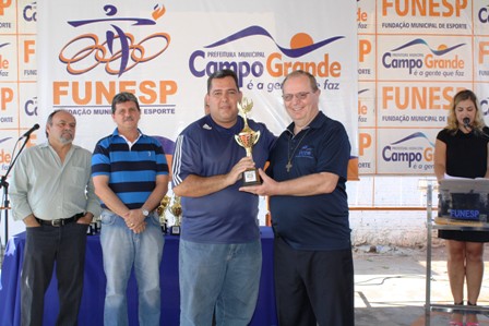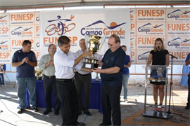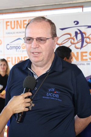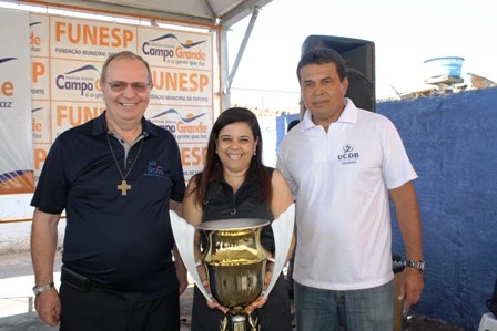 O Reitor da Universidade Católica Dom Bosco (UCDB), Pe. José Marinoni, representou a Instituição na entrega do título de campeão geral dos Jogos Abertos de Campo Grande. O troféu foi entregue pelo prefeito Nelsinho Trad, em cerimônia realizada na sede da Fundação Municipal de Esporte (Funesp). Participaram do evento a Pró-Reitora de Extensão e Assuntos Comunitários, Luciane Pinho de Almeida, o coordenador do Setor de Esporte da UCDB, Luiz Magalhães, e o diretor-presidente da Funesp, Carlos Alberto Assis.