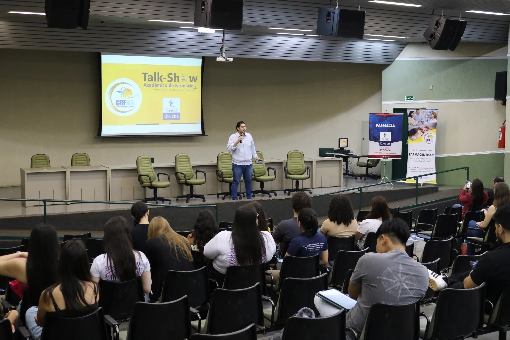 A Universidade Católica Dom Bosco (UCDB), por meio do curso de Farmácia, recebeu nesta terça-feira (25) a primeira edição do Talk Show Farmacêutico, levando informação sobre a profissão para acadêmicos dos semestres iniciais. O evento promovido pelo Conselho Regional de Farmácia de Mato Grosso do Sul e comandado pelo gestor de comunicação, Dendry Rios.