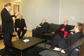 O palestrante foi recebido pelo Reitor da UCDB, Pe. José Marinoni, pelo arcebispo de Campo Grande, Dom Dimas Lara Barbosa e pelo Pró-Reitor de Administração da Católica, Ir. Altair Monteiro da Silva. Na palestra, estiveram presentes o arcebispo emérito de CG, Dom Vitório Pavanello, o bispo auxiliar de CG, Dom Eduardo Pinheiro, além de representantes da Missão Salesiana de Mato Grosso, acadêmicos de Direito, professores e coordenadores. Também como visitante estava o estava Pe. Cosimo Semeraro, professor Dr. e secretário do Comitê Pontifício de Ciências Históricas da Santa Sé.