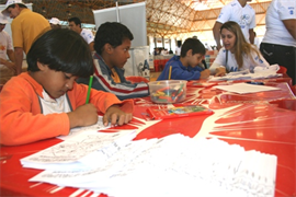 Crianças e adolescentes também se divertiram na Gibiteca da UCDB, representada pelos acadêmicos do curso de Letras, que além das histórias em quadrinhos, puderam ter os rostos pintados. Enquanto as pinturas atraiam as meninas, os meninos se divertiam com a oficina de pipas, montada pelos acadêmicos de Educação Física. “Não vejo a hora de terminar a minha pipa para empiná-la com o meu irmão”, confessou o pequeno Douglas, de 5 anos, que estava acompanhado do irmão Diego, de 13.