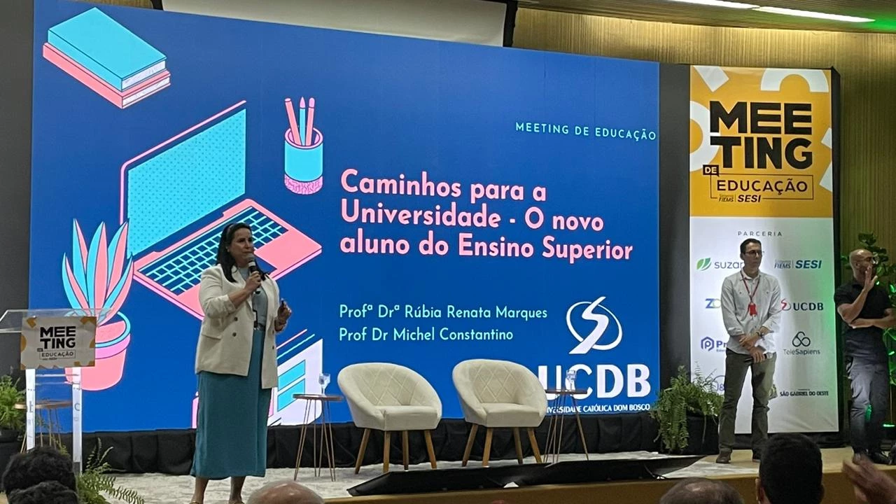Foram discutidos temas como inteligência artificial na educação básica, gestão do aprendizado baseado em dados, neurociência, gestão por competências, entre outros. A pró-reitora Rubia Marques e o professor Michel Angelo Constantino de Oliveira, coordenador do Programa de Pós-graduação Stricto Sensu em Desenvolvimento Local da UCDB, foram palestrantes no evento e abordaram o tema “Caminhos para a Universidade - O novo aluno do ensino superior”.