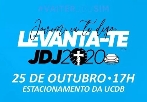 A Universidade Católica Dom Bosco (UCDB) vai sediar no próximo domingo (25), a partir das 17 horas, a Jornada Diocesana da Juventude 2020 (JDJ) promovida pela Pastoral Juvenil da Arquidiocese de Campo Grande e contará a santa missa presidida por Dom Dimas Lara Barbosa e show musical com a Comunidade Católica Colo de Deus. O evento também vai contar com praça de alimentação no formato delivery.