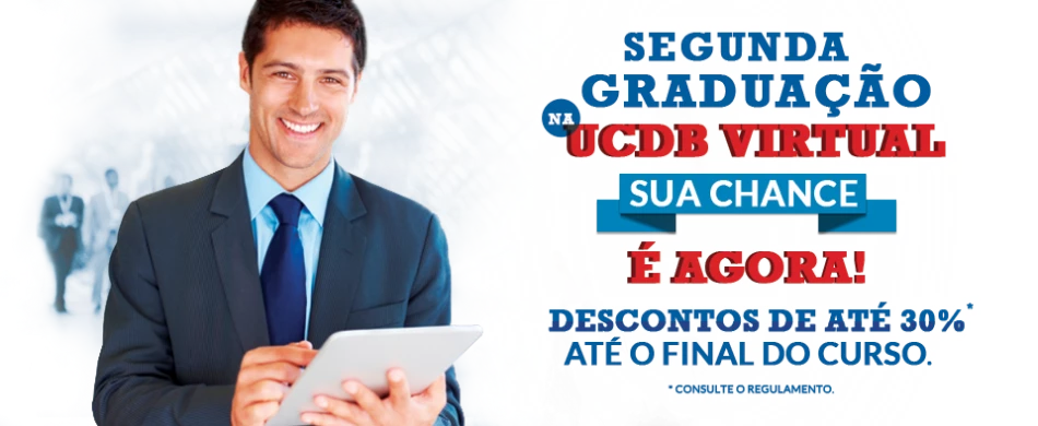 A UCDB Virtual oferece para profissionais já formados a oportunidade de cursar uma segunda graduação com desconto em suas mensalidades. Para quem se formou na UCDB o desconto é de 30% para pagamentos efetuados até dia 5 de cada mês, enquanto para aqueles que se formaram em outras instituições, o desconto é de 20%, nas mesmas condições.