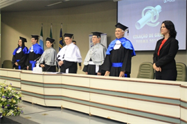 Além dos presentes no anfiteatro, familiares e formandos que não puderam comparecer acompanharam ao vivo a transmissão via internet da cerimônia, que teve em sua mesa solene a presença do Reitor da UCDB, Pe. José Marironi, do Pró-Reitor Administrativo, Ir. Altair Monteiro Gonçalo, e da Pró-Reitora de Ensino e Desenvolvimento, Me. Conceição Butera.
