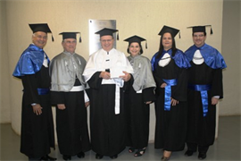 Entre juramentos, leitura de atas e imposições de grau, o Reitor Pe. Marinoni também conversou com os formandos, agradecendo a todos por mais esse momento. “É uma alegria entregar ao mercado esses profissionais que se dedicaram tanto durante a formação. Vocês devem agradecer pela cobrança dos professores, permitindo que hoje estejam aqui comemorando essa conquista”, declarou o Reitor.