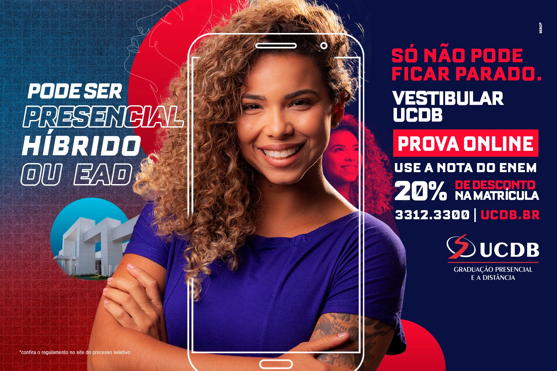 Último dia para se inscrever no Vestibular de Inverno UCDB e garantir 20% de desconto na matrícula. O processo seletivo é gratuito e on-line. Uma parte das vagas para os cursos de graduação presenciais, a distância e híbridos são destinados aqueles que preferem utilizar a nota do Exame Nacional do Ensino Médio (Enem). Os calouros também têm 20% de desconto na matrícula neste mês.