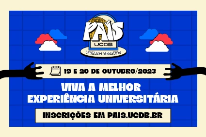 Ùltimos dias para se inscrever gratuitamente na terceira edição do País UCDB, que neste ano vai ocorrer em dois dias (19 e 20 de outubro) para contemplar ainda mais estudantes pré-vestibulandos de Campo Grande e região, com experiências práticas e imersivas de todas as áreas do conhecimento. Para participar basta clicar empais.ucdb.br e preencher o formulário.