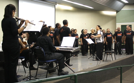 Despertando risos e aplausos, os grupos artísticos da UMI deram início ao evento. Os integrantes do Teatro Universitário Idoso Ativo (TUIA) apresentaram pequenas peças que satirizavam acontecimentos do cotidiano; já o Coral UMI cantou músicas natalinas.