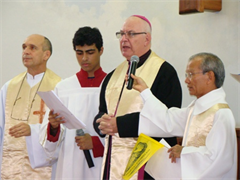 Logo após a colocação da Urna próxima do altar aconteceu uma celebração, presidida pelo arcebispo de Campo Grande, Dom Vitório Pavanello, e que teve a participação do inspetor da Missão Salesiana e chanceler da Universidade Católica Dom Bosco (UCDB), Pe. Lauro Takaki Shinohara. O Reitor da UCDB, Pe. José Marinoni, também esteve na igreja para saudar a chegada das Relíquias de Dom Bosco.