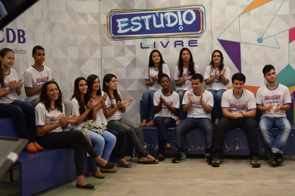 Os 13 alunos ganhadores do Desafio UCDB 2015 participaram ontem da gravação especial do programa Estúdio Livre, na Universidade Católica Dom Bosco (UCDB), que contou também com a presença da coordenadora adjunta do curso de Direito, professora Elaine Cler.