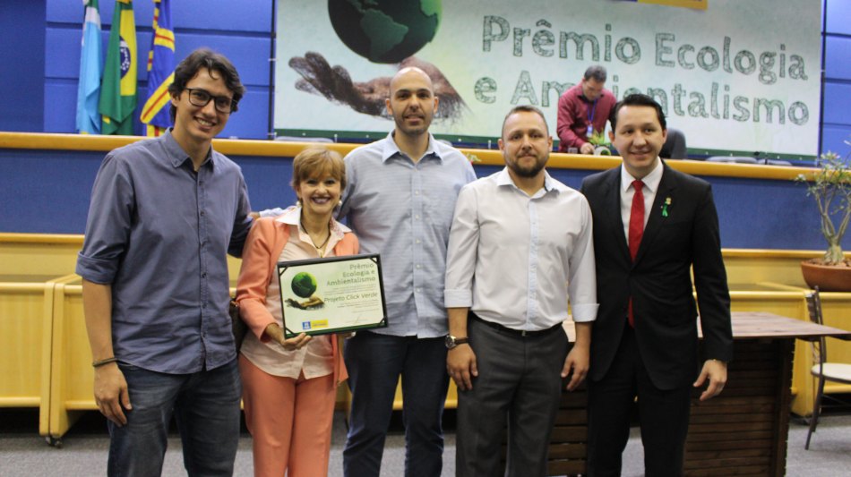 Os professores de Direito Wedney Rodolpho de Oliveira, e de Engenharia Sanitária e Ambiental, Fábio Martins Ayres, e o projeto de extensão Click Verde foram homenageados em sessão solene da Câmara de Vereadores de Campo Grande, na manhã de ontem (7). Eles receberam o Prêmio Ecologia e Ambientalismo, entregue neste ano a 44 personalidades, entidades e projetos ligados à preservação do meio ambiente.