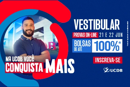 A chance de ingressar com bolsa de estudo na melhor universidade particular de Mato Grosso do Sul e iniciar os estudos ainda em 2024 está em suas mãos. Estão abertas as inscrições para o Vestibular de Inverno, com bolsas de até 100%. A prova será nos dias 21 ou 22 de junho, com vagas para cursos presenciais, híbridos e a distância. As inscrições podem ser feitas gratuitamente pelo site www.ucdb.br/vestibular.