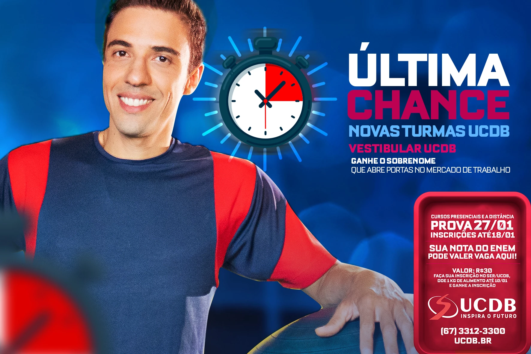 Se você quer ingressar na Universidade Católica Dom Bosco, mas ainda não participou de nenhum processo seletivo, inscreva-se de graça para o Vestibular Novas Turmas UCDB 2019 até o dia 10 de janeiro do próximo ano. Para valer a isenção da taxa, o procedimento deve ser feito na Área de Relacionamento (SeR) da Instituição, localizada na entrada do campus Tamandaré, mediante a entrega de um quilo de alimento não perecível.