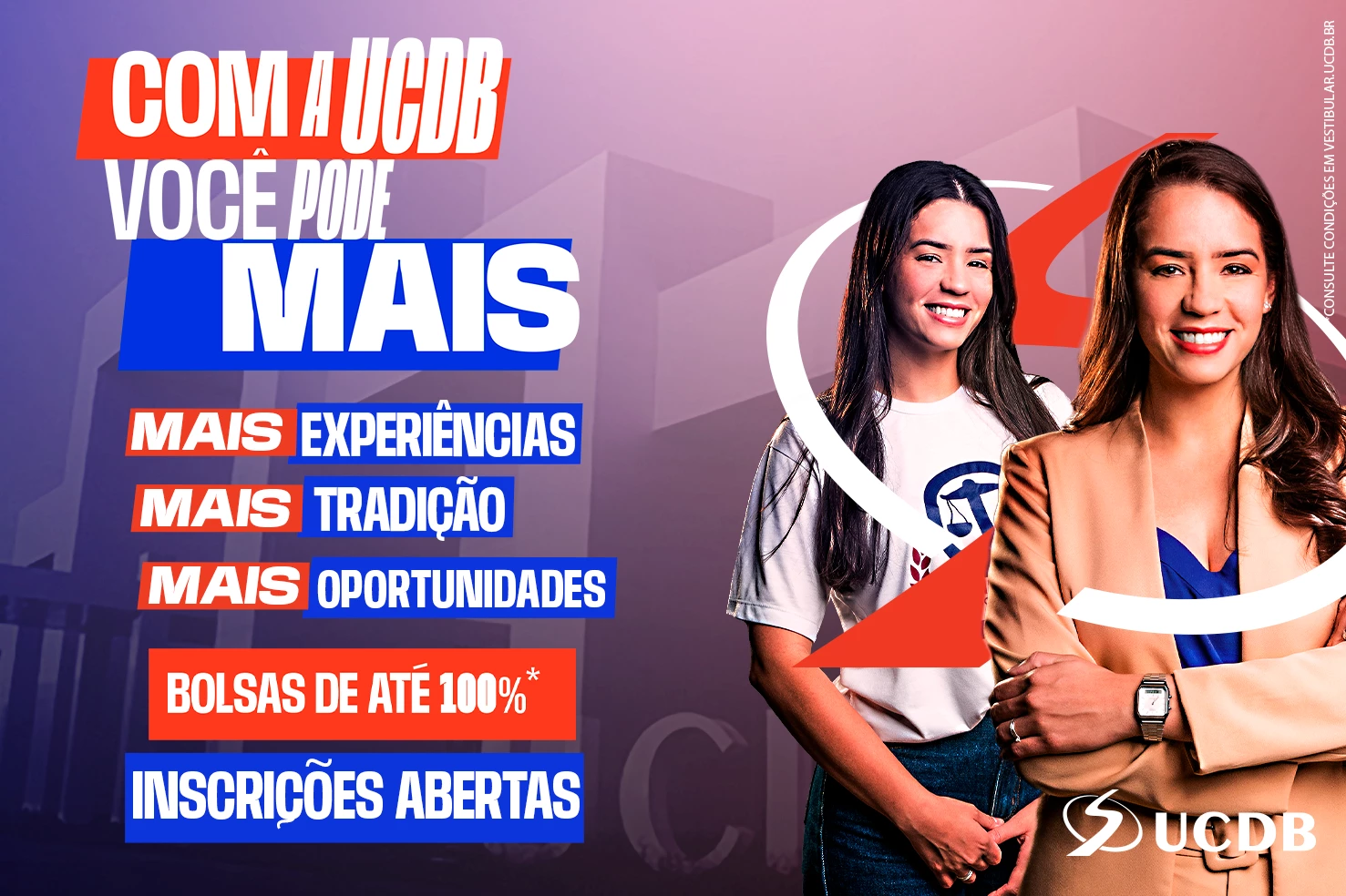 Mais experiência, infraestrutura e tradição. Mais oportunidades, carreira e prática. Assim são as graduações na Universidade Católica Dom Bosco (UCDB), e a chance de fazer parte desse universo é agora: estão abertas as inscrições para o Vestibular Novas Turmas 2023B, com bolsas de estudo de 50% e de 100%. Neste mês, a UCDB recebeu o conceito máximo, nota 5, no processo de recredenciamento institucional do Ministério da Educação (MEC), comprovando a nossa excelência na formação dos acadêmicos, o que faz da Católica a melhor universidade particular de Mato Grosso do Sul.