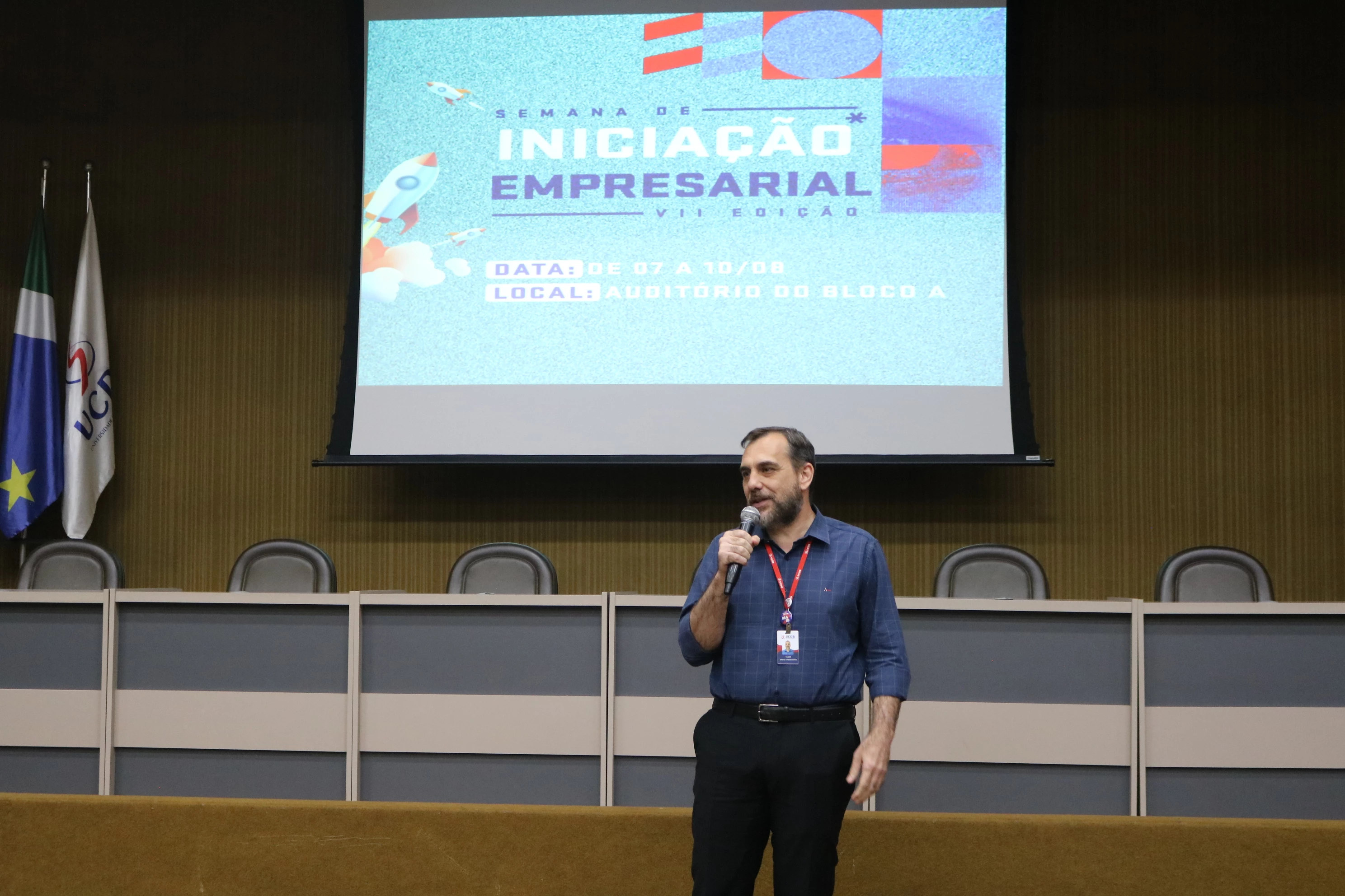 O egresso do curso de Administração da Universidade Católica Dom Bosco Guilherme Junqueira foi o convidado da noite de abertura da VII Semana de Iniciação Empresarial promovida pela Agência de Inovação e Empreendedorismo da Universidade Católica Dom Bosco (S-Inova/UCDB). O evento tem a participação de acadêmicos, docentes e da sociedade em geral e acontece até dia 10, sempre no período noturno.