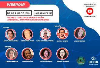 A Universidade Católica Dom Bosco (UCDB), por meio do curso de Ciências Biológicas, realiza a partir desta quarta-feira (7) até a próxima sexta-feira (9), a oitava edição do PECC - Diálogos de Educação Ambiental: Compartilhando Saberes. O evento terá transmissão às 19h pelo YouTube oficial da UCDB.