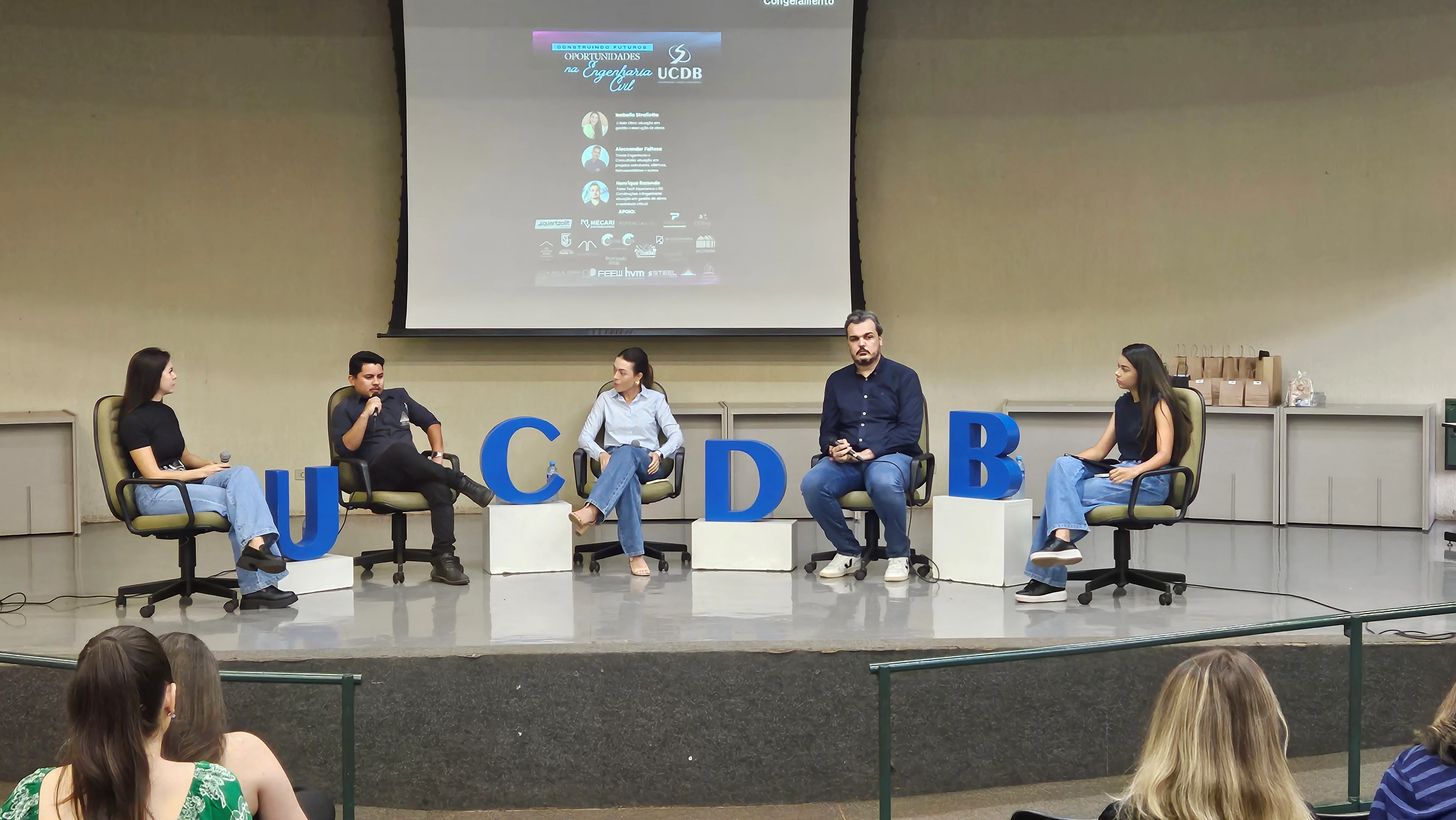 No período matutino, os convidados foram os egressos Alecsander Feitosa Moraes (Tríade Engenharia e Consultoria), Isabella Nantes Straliotto (A Bella Obra) e Henrique Bolzan de Rezende (Feew Tech Experience e RD Construções e Engenharia). A mediação do debate foi feita pelas acadêmicas da UCDB Maria Júlia Rodrigues Barros e Duanny Karoline Cabral Martins.