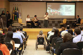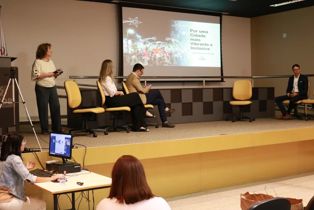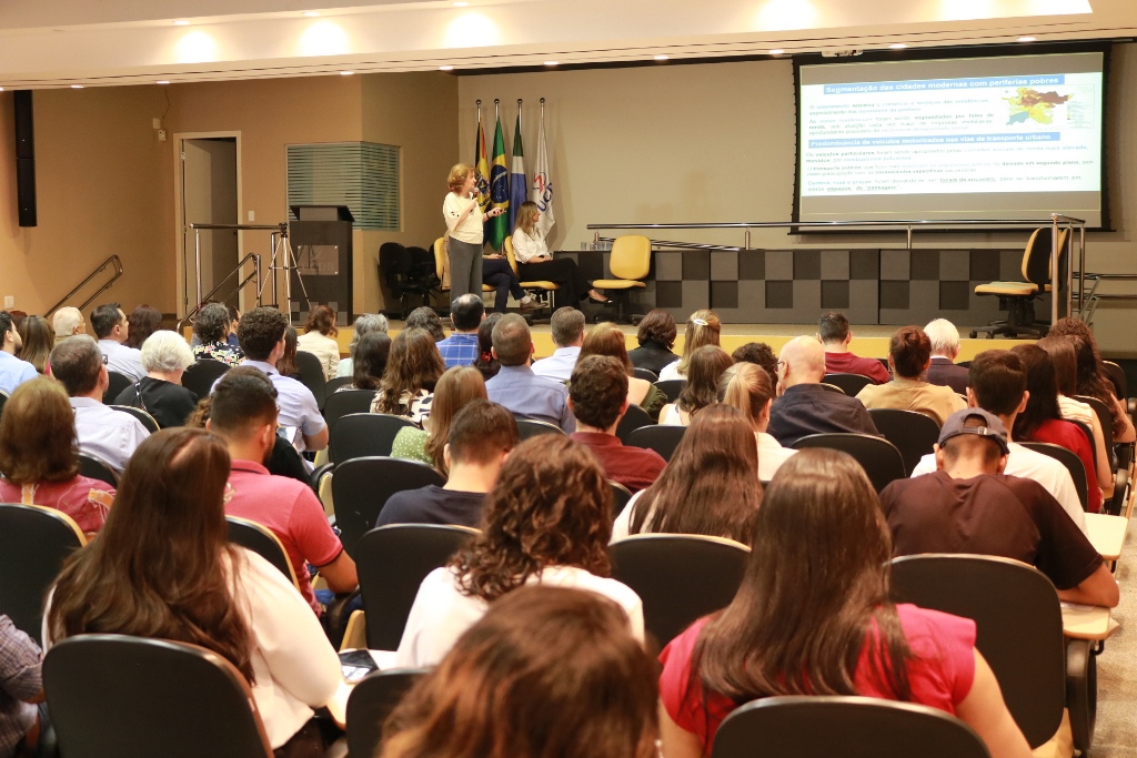 Ao final da abertura, a professora Cleonice deu início a palestra ‘Por uma cidade mais vibrante e inclusiva’. “De acordo com estudos da ONU, até 2050, 70% da população mundial vai estar nas cidades”.