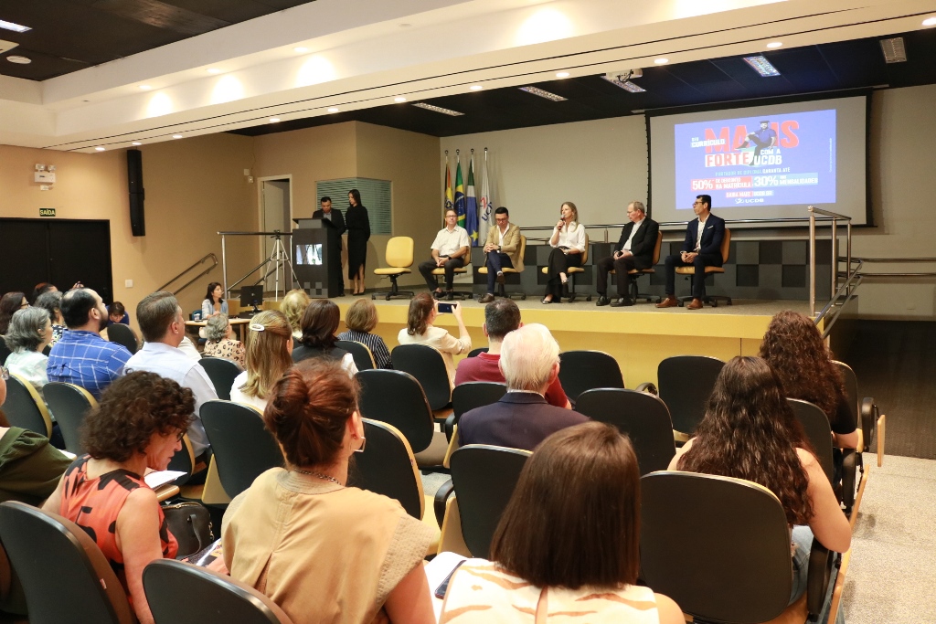 O reitor da Universidade Católica Dom Bosco, Pe. José Marinoni, juntamente com o pró-reitor de Pesquisa e Pós-graduação, Cristiano Marcelo Espínola Carvalho, do coordenador do Programa de Pós-Graduação mestrado e doutorado em Desenvolvimento Local, Michel Constantino, e a professora Cleonice Alexandre Le Bourlegat, além da subsecretária de Gestão de Projetos Estratégicos da Prefeitura de Campo Grande, Catiana Sabadin, e o especialista Diego Andes participaram nesta quarta-feira (26), no auditório do bloco M da Católica, do workshop de avaliação do Programa Reviva Campo Grande.
