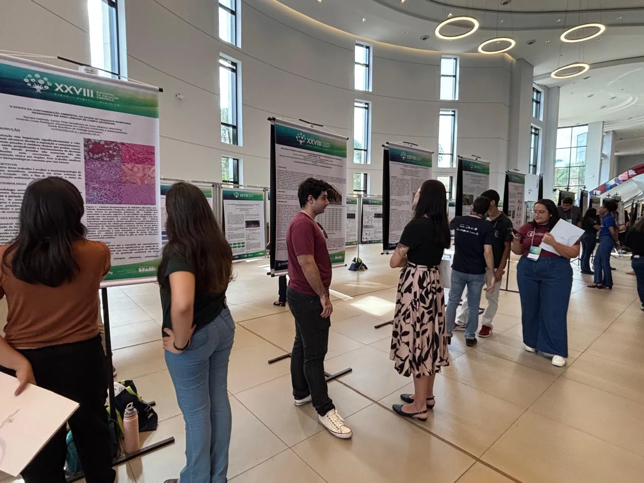 Durante o evento, diversos alunos da UCDB apresentam seus trabalhos, como Thomas Lombardi Rocha, acadêmico de Medicina Veterinária, e orientado pela professora Gisele Braziliano de Andrade. O projeto aborda a “Avaliação bioquímica e hematológica de pequenos mamíferos residentes de áreas urbanas em Campo Grande – MS”, mais especificamente o Didelphis albiventris, conhecido como gambá de orelha branca. Para a pesquisa, foram coletadas amostras de sangue desses animais, analisadas no Labdoc da UCDB para avaliar os impactos da poluição ambiental, incluindo resíduos descartados de forma inadequada, como baterias e plásticos, que podem afetar tanto a saúde dos animais quanto a dos humanos que compartilham o mesmo ambiente. “A participação me faz sentir que estou fazendo algo relevante para a sociedade, pois esse tipo de pesquisa pode influenciar políticas públicas, envolvendo o bem-estar humano e ambiental”, disse o aluno.