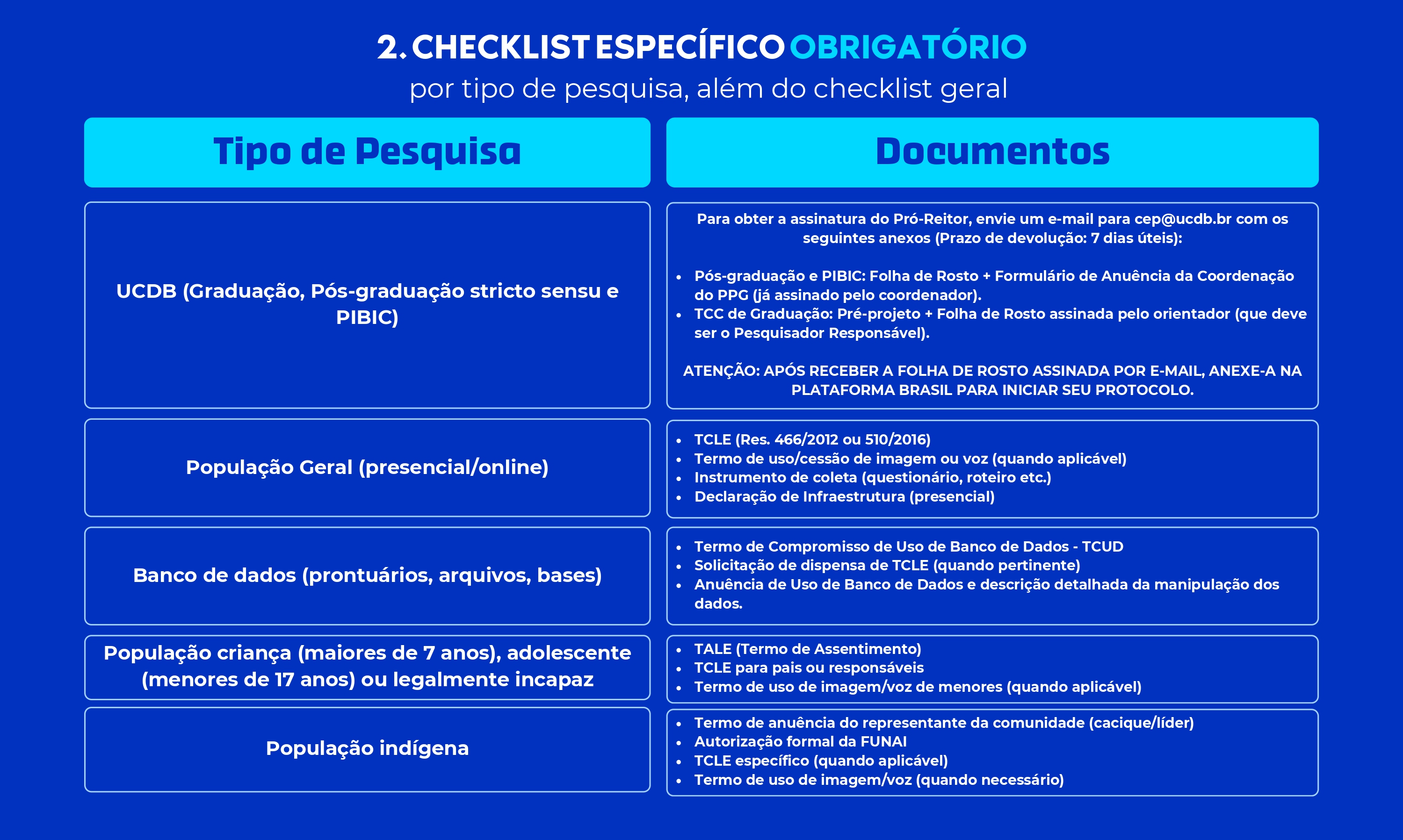 Para dúvidas ou orientações, entre em contato com a secretaria do CEP/UCDB: