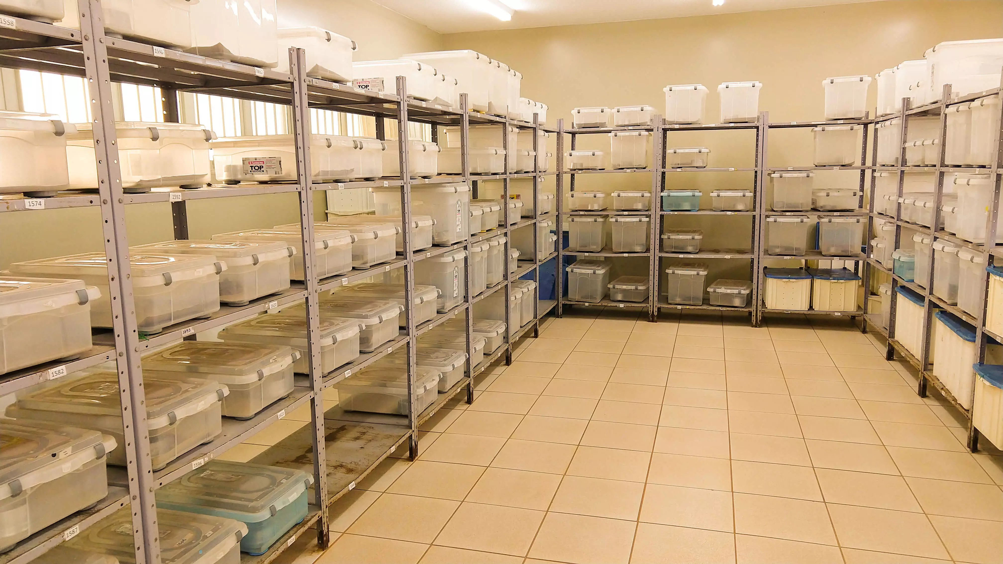 - Guarda de peças como peles de onça-pintada, cervos e cabeças empalhadas apreendidas pela Polícia Federal, usadas em aulas e educação ambiental.
