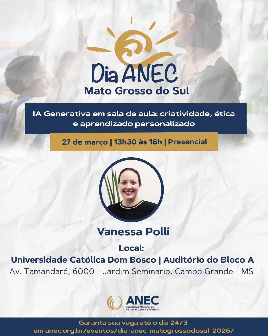 | IA Generativa em Sala de Aula: Criatividade, Ética e Aprendizado Personalizado | 27/03/2026 00:00:00 | Vanessa Polli | R$ |