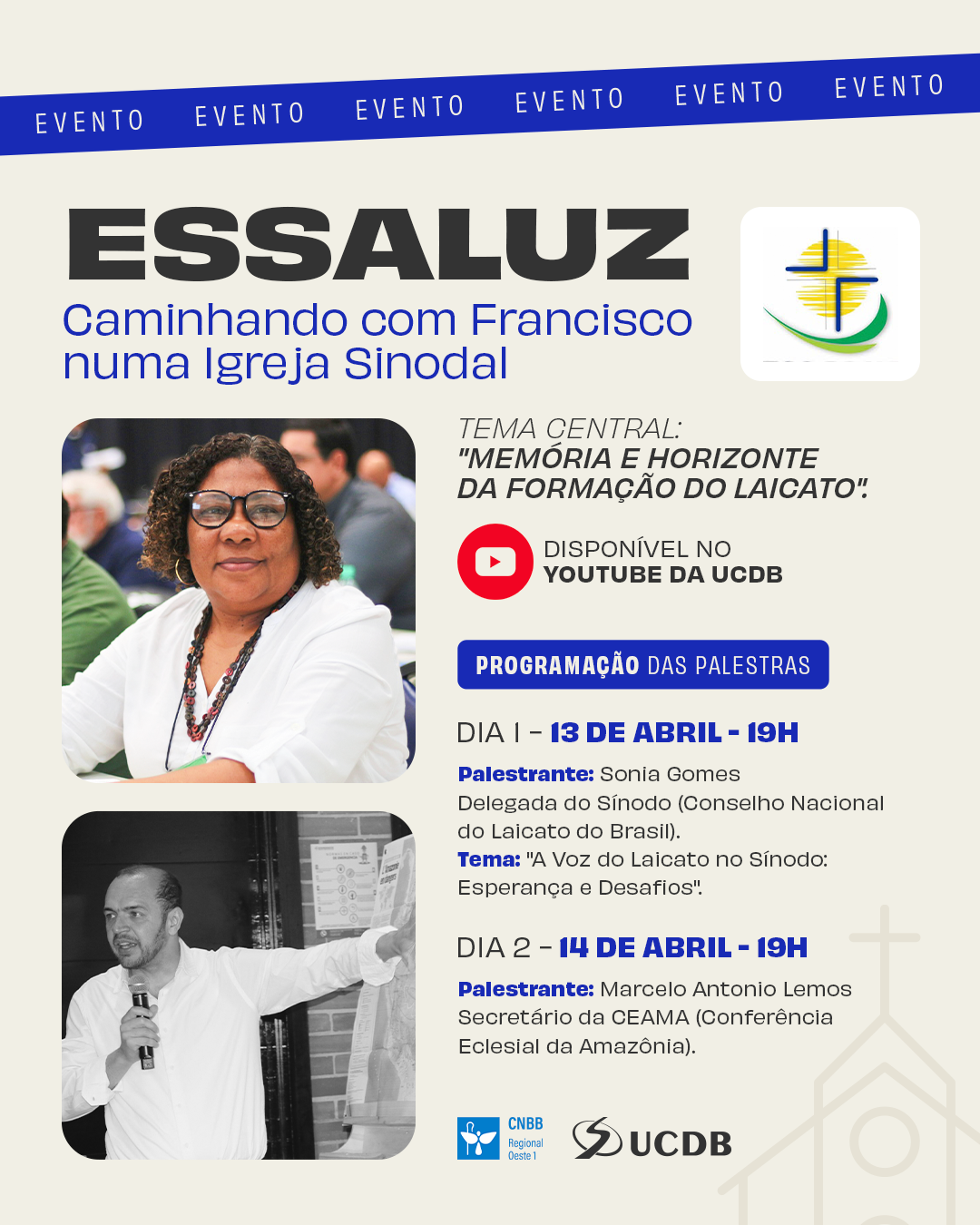 - Objetivo Geral:Promover um espaço online de reflexão, comunhão e formação, honrando o legado do Papa Francisco no primeiro ano de seu falecimento, e fortalecer a importância do estudo teológico para o protagonismo do laicato numa Igreja Sinodal através do projeto ESSALUZ das dioceses do Regional Oeste 1 da CNBB.Objetivos Específicos:Fazer Memória: Recordar os ensinamentos centrais do Papa Francisco sobre a Igreja em saída, a sinodalidade e a corresponsabilidade de todos os batizados.Fundamentar a Formação: Demonstrar, teológica e pastoralmente, que a formação contínua (o "horizonte") é essencial para que o leigo assuma seu papel transformador na Igreja e no mundo.Divulgar a ESSALUZ: Apresentar a Escola de Teologia para Laicato ESSALUZ como uma ferramenta prática e acessível de capacitação, convidando novos alunos a integrarem este caminho de luz e conhecimento.Gerar Engajamento: Fomentar o diálogo e a partilha de experiências entre os participantes sobre como vivem a sinodalidade em suas realidades paroquiais e comunitárias.