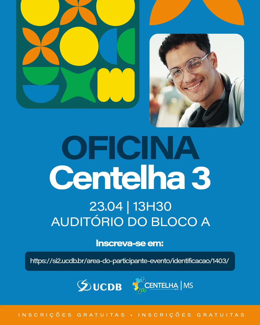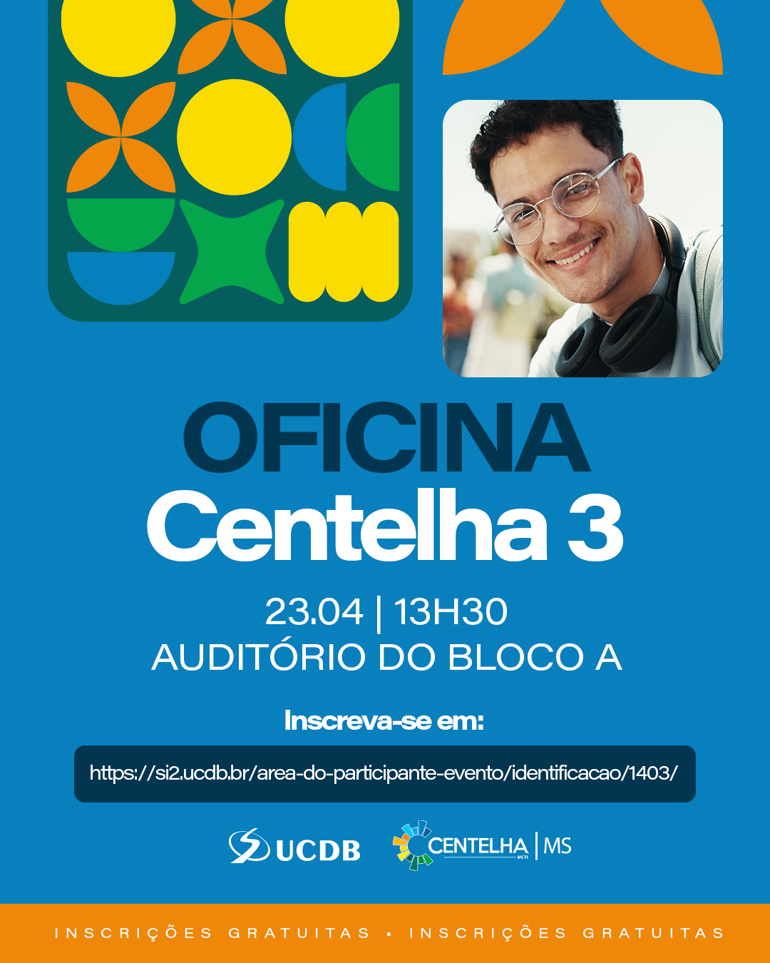 | Oficina Centelha 3 | Auditório Bloco "A" 322 lugares | 23/04/2026 | 13:30 | 15:00 | R$ |