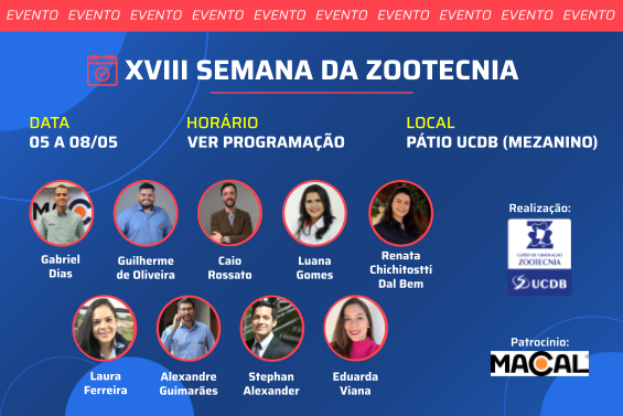 - Promover a integração e o aprofundamento de conhecimentos teóricos e práticos na área de zootecnia por meio de palestras, com o intuito de proporcionar aos alunos uma visão abrangente sobre as inovações e desafios da profissão, além de fortalecer o networking entre acadêmicos, professores e profissionais do setor. A semana visa também estimular o pensamento crítico e a troca de experiências que contribuam para a formação de profissionais capacitados e atualizados com as tendências do mercado.
