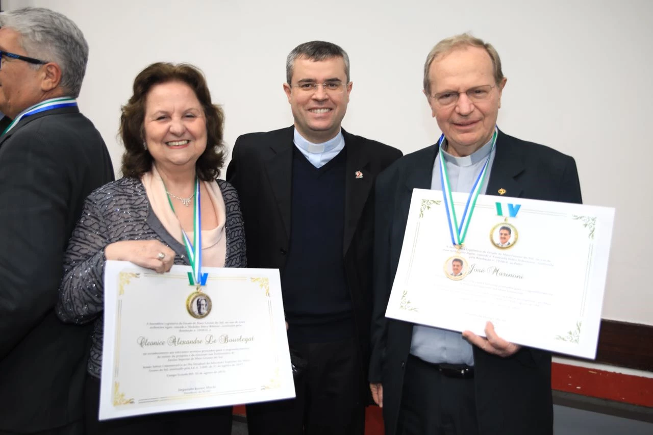 Pe. Marinoni e professora Cleonice são homenageados pela Assembleia Legislativa e Crie-MS